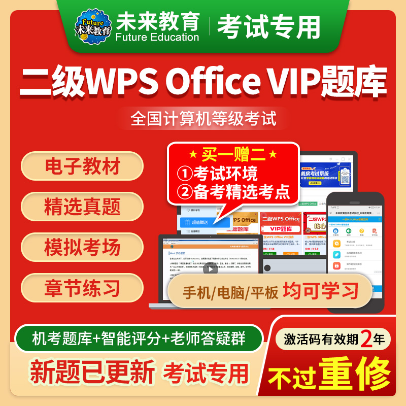 全国计算机等级考试二级WPS OfficeVIP题库【章节练习+真考题库+模拟考场+电子教材+试题搜索+超值赠送】